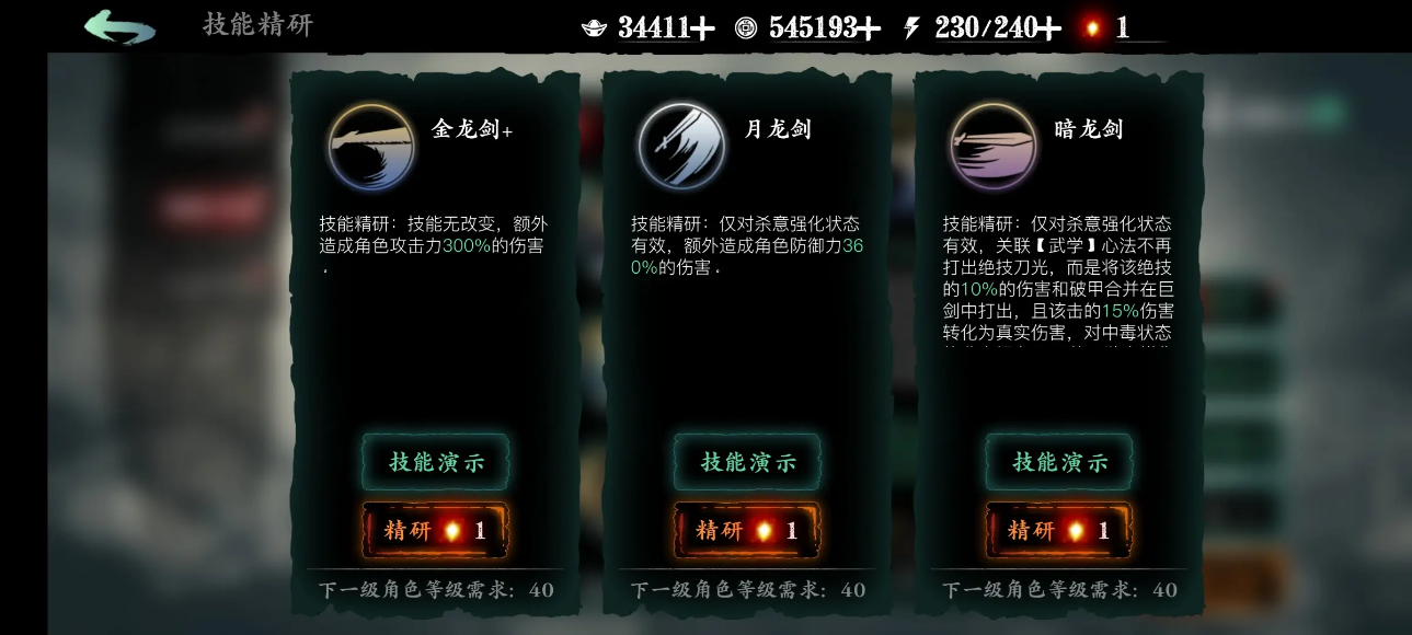 影之刃3金龙剑技能精研哪个