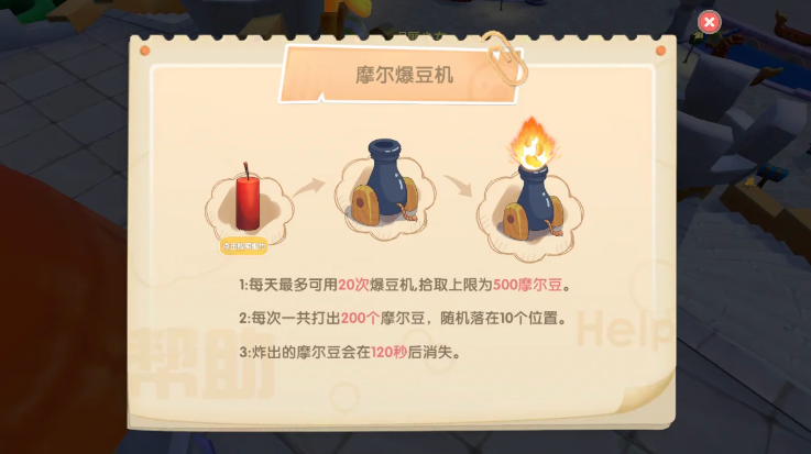 爆豆机被激活后,会在周围10个固定位置随机喷发摩尔豆。玩家需在120秒内完成拾取,超时未捡取的摩尔豆会自动消失。每日通过爆豆机获取的摩尔豆存在500个上限,达到上限后继续投掷爆竹不会产生额外收益。拾取期间建议取消骑乘状态以提高移动效率,且喷发的摩尔豆可被其他玩家共享拾取。