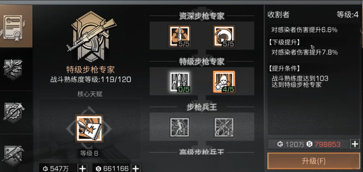 狙击手职业的核心技能包括动态视野、架枪和屏息射击,这些技能能显著提升对移动目标的伤害和武器火力值。混乱打击技能看似强大但实际效果有限,在免爆属性普遍存情况下难以触发。感染型弹药和标记弹属于次级优先技能,可根据剩余技能点酌情分配。狙击手需注意架枪时的位置选择,避免成为敌方集火目标。