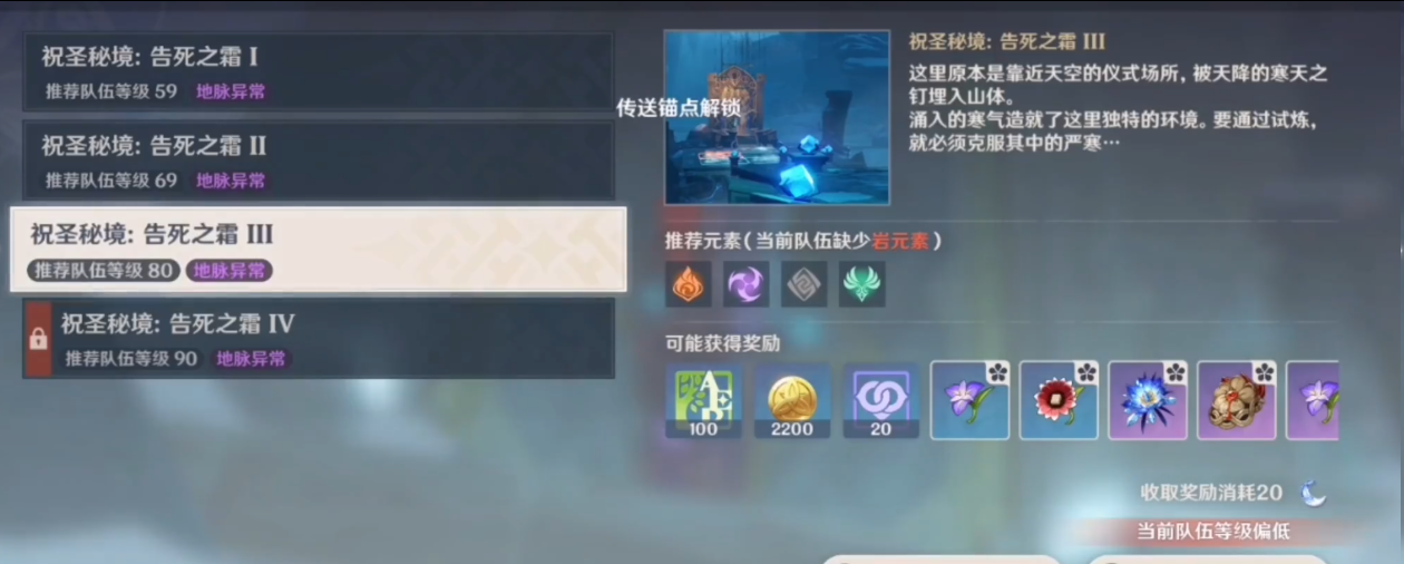 队伍搭配方面,推荐使用冰系或水系角色,比如甘雨、罗莎莉亚、芭芭拉等,她们在秘境中有属性加成。砂糖的聚怪能力也能帮助快速清场。如果觉得生存压力大,可以带一个护盾角色,比如迪奥娜,既能抗伤害又能缓解严寒影响。