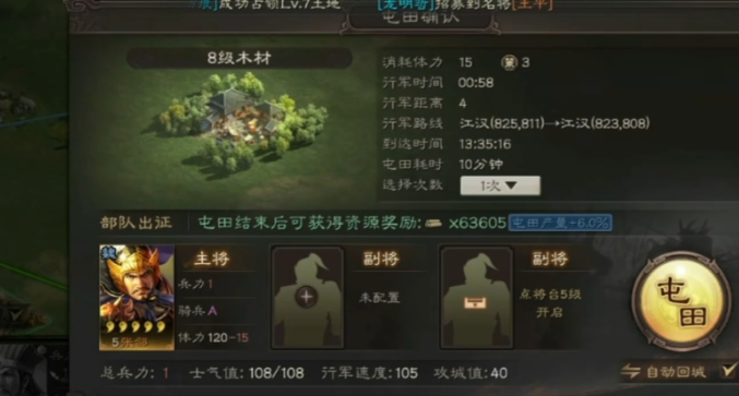 第二个队伍的关键是别和主力抢资源。前期石料特别缺,所以分城要早点建起来,分城的资源建筑能独立产出铜钱和石料。屯田的时候选高级地收益更高,比如能打3级地后就别屯2级地了。策书每小时恢复1个,每天买满策书能多屯几次田,这样两个队伍的粮草和铁矿才不会卡住。如果遇到打不过的地,可以试试两队车轮战,第一队打平后立刻派第二队补刀。