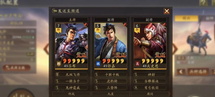 武将搭配上,第一个队伍推荐纯菜刀队,比如孙策+夏侯渊这种物理输出组合,因为策略队前期技能不稳定容易翻车。第二个队伍可以慢慢攒法师将,比如华佗这种有治疗的辅助。注意别把高统御武将全塞一队,比如5C的武将带两个就超负荷了。战法点优先给主力队,第二个队伍的战法先点到5级够用就行,后期再补满。
