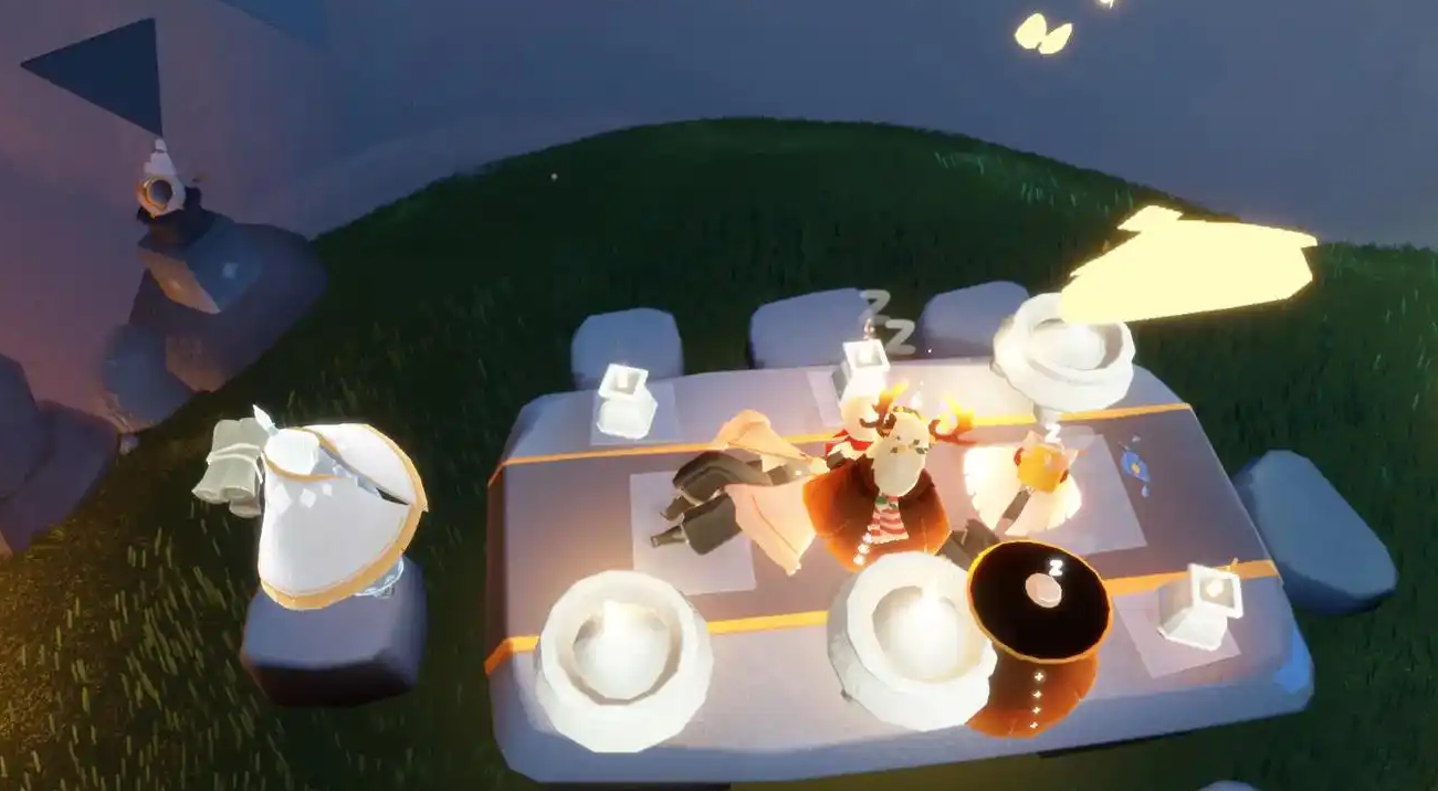 挂机技巧方面,玩家可以通过特定操作维持蜡烛不熄灭。先调整角色位置朝向餐桌中央,使用引蝶动作后尝试添加好友再取消,手持的白蜡烛将保持点燃状态。若需长时间挂机,可打开商店界面的问号说明页面并保持不关闭,这样角色不会进入睡眠状态且蜡烛持续燃烧。这种方法适合没有火盆道具的玩家实现半自动挂机。