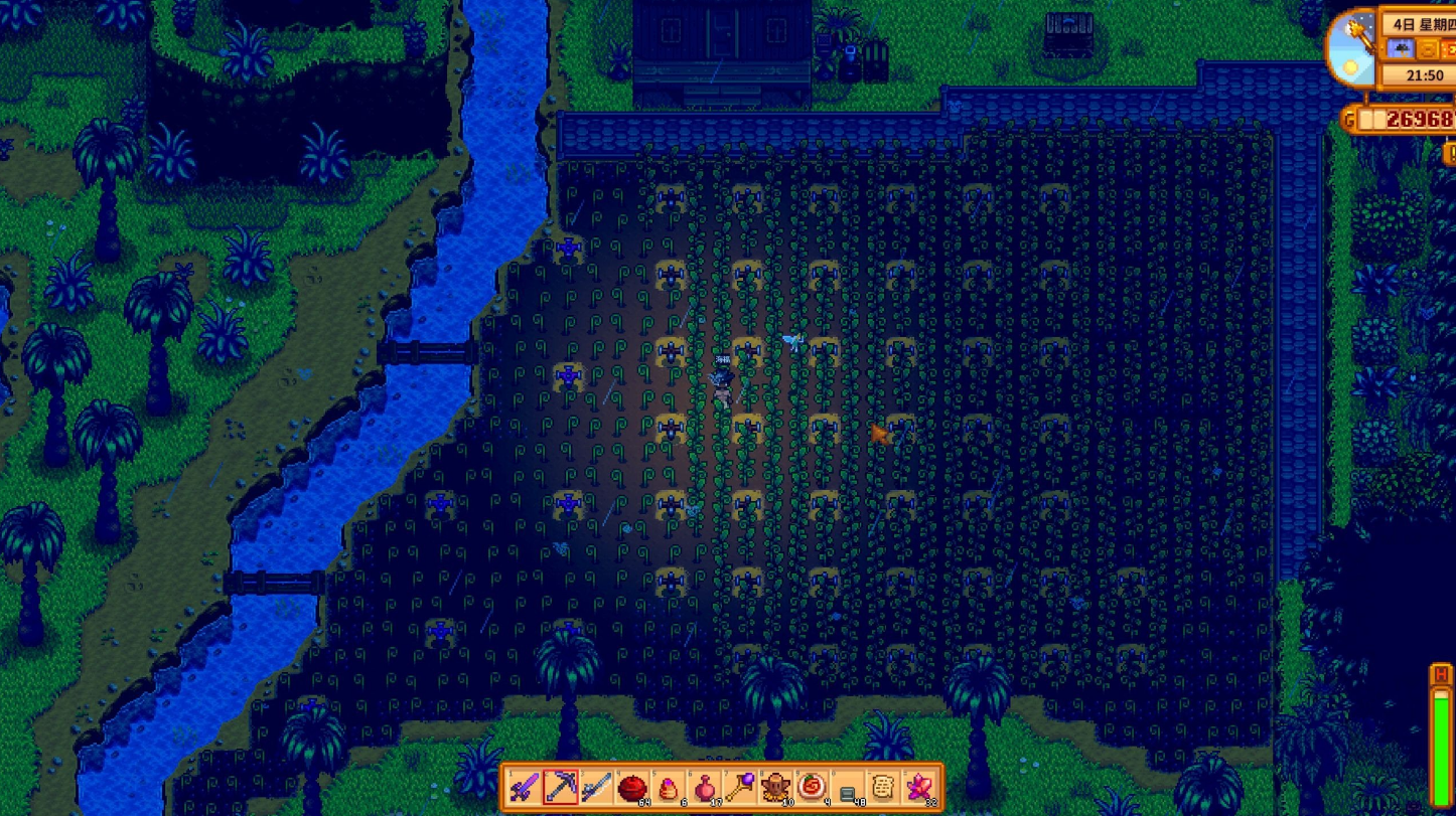 高茎作物如玉米和向日葵容易被吹倒,而根系发达的南瓜或甜菜根则相对抗风。风暴后部分作物可能提前成熟或腐烂,影响产量。建议玩家在风暴预警后优先收割易损作物,或选择抗风品种以减少损失。风暴期间钓鱼效率可能提升,某些稀有鱼类仅在雨天出现,可借此补充收入。