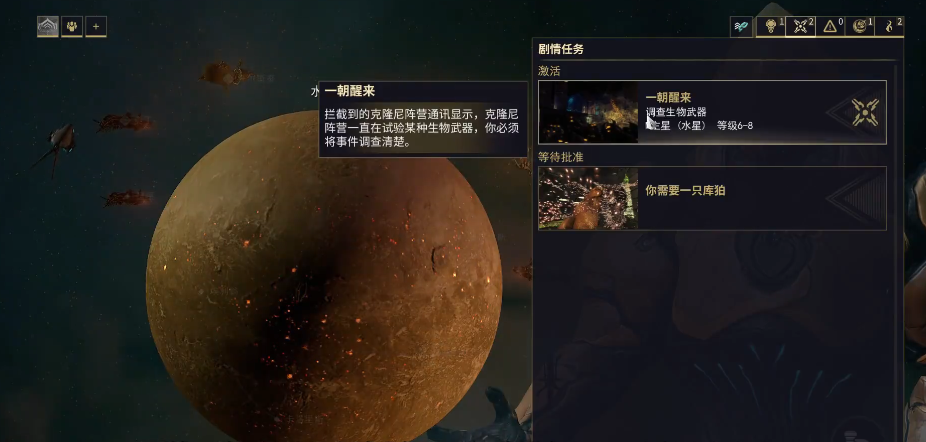 若遇到任务无法正常触发的情况,建议检查是否已完成全部前置条件,包括水星枢纽所有节点和沃尔的战利品任务。完成一朝醒来后,游戏会解锁后续的反重力曲翼系列任务,这是获得飞行装备的关键前置。