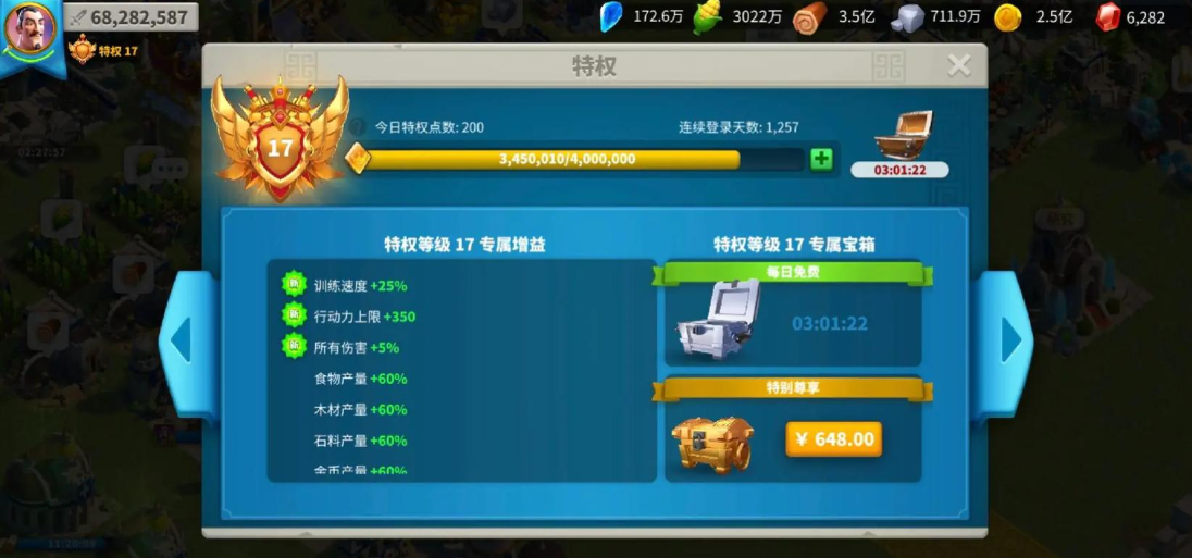 除了主城等级,VIP等级也能帮你增加队伍数量。VIP系统会提供一些额外福利,比如额外的队伍派遣位。提升VIP等级需要积累VIP点数,可以通过完成日常任务、参与活动或者直接购买VIP经验来获取。VIP等级达到6级时,还能永久解锁第二个建造队列,这对加快主城升级很有帮助。