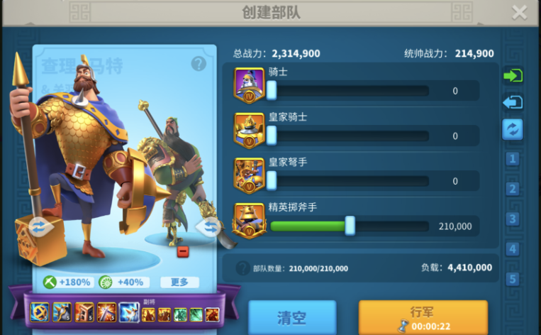 开启和平护盾防止被偷袭,下线前将部队派去采集或藏进联盟要塞。训练时留一部分资源应急,避免被掠夺后无法继续补兵。爆兵结束后及时调整策略,把重心转向武将培养或装备强化,让部队战力真正转化为战场优势。记住爆兵只是手段,最终目标是在KVK或联盟战中发挥更大作用。掌握这些技巧后,你会发现爆兵不再是盲目堆数量,而是有节奏的实力飞跃。根据自身情况灵活调整,比如微氪玩家可以专注步兵,零氪党优先练级和压堡。只要耐心积累,就算不砸钱也能靠策略玩出精彩。