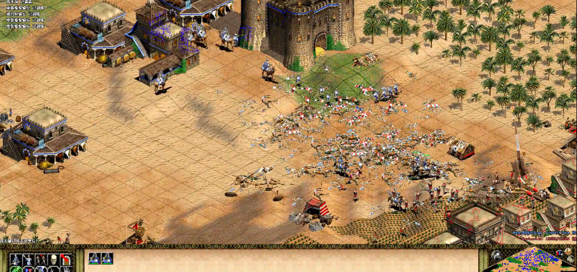 后期决战关键在于兵种搭配和战场操作。帝王时代优先升级重装骆驼和精锐长戟兵,配合攻城武器推进。面对乃蛮族的游侠冲锋,可以用僧侣辅助治疗和转化。火炮和巨型投石机是拆毁城堡的利器,但需要派骑兵保护它们免受偷袭。如果资源充足,可以训练少量轻骑兵专门骚扰敌方农民,打乱对手经济节奏。注意保持部队数量优势,阵亡单位要及时补充,避免出现兵链断裂的情况。
