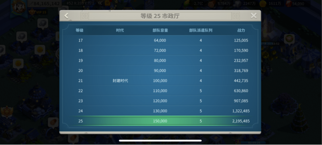 23本作为后期发展的关键节点,标志着玩家进入高强度资源竞争和战略博弈阶段。市政厅升级所需资源量大幅增加,建议优先将联盟中心升至25级以获得30次联盟帮助,每次帮助可减少当前队列1%时间且至少缩短3分钟。科技研究应集中军事路线,T4兵种解锁是核心目标,需预留加速道具配合7%研究速度符文和王国增益效果。建筑升级顺序遵循联盟中心>学院>城堡原则,通用加速道具保留给科技研究而非建筑。