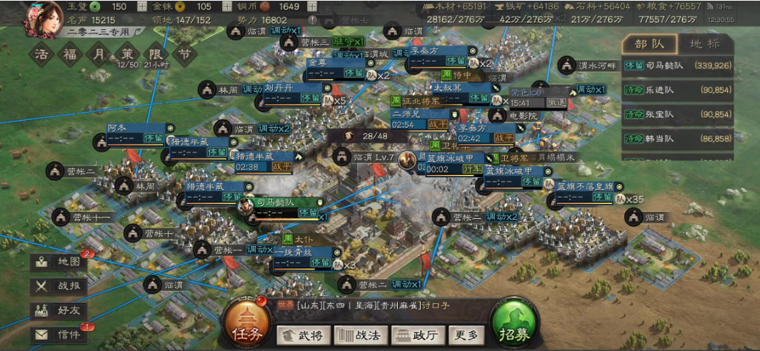 盟友之间的协作是提升实力的关键,尤其是打地时互相支援能大幅降低难度。咱们要明确一点:盟友不能直接替咱们占领土地,但可以通过垫刀的方式帮忙消耗守军兵力。具体操作很简单,比如盟友先派队伍去打目标地块,把守军兵力磨掉一部分,咱们再补刀拿下。这种方式特别适合打高级地时兵力不足的情况,能有效减少战损。