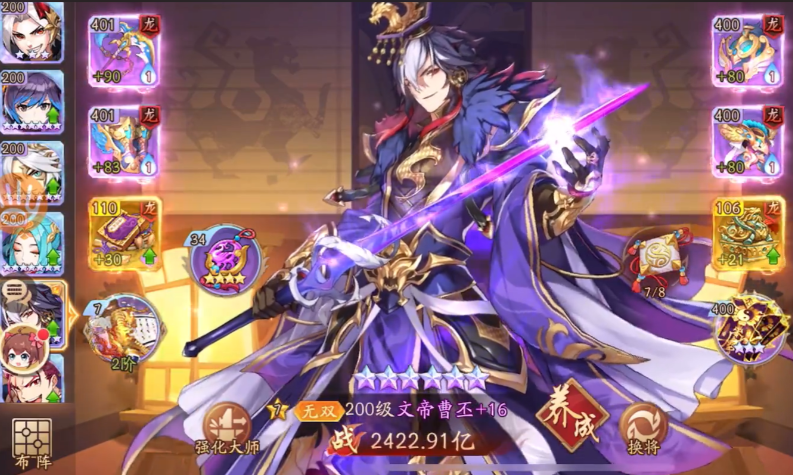 曹丕通常占据一号位,利用先手优势快速施加控制。与曹操形成父子联动可增强控制链稳定性,张辽作为二号位副将提供持续输出。曹节退居四号位补充控制效果,主角和姜子牙构成基础阵容框架。若拥有小金刚,建议其占据四号位并装备青釭剑,其余位置相应调整。这种配置能最大化发挥魏国控制体系的协同效应。