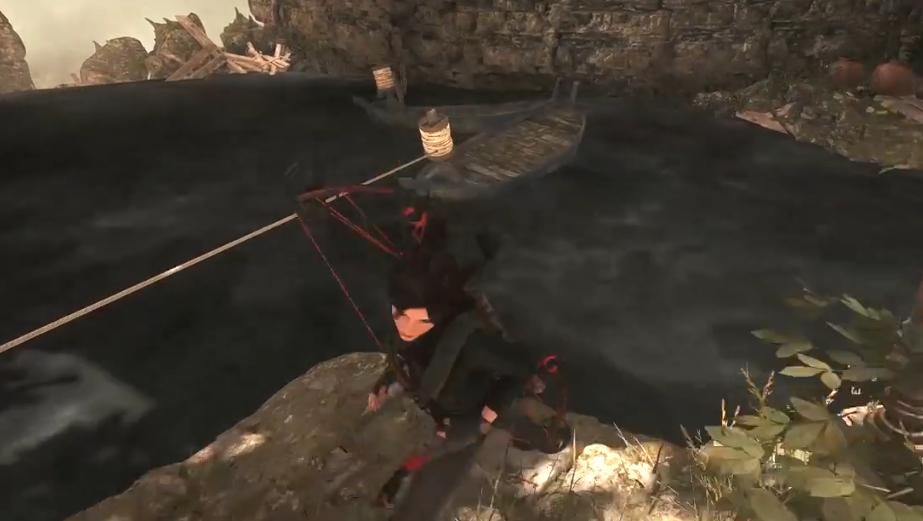 抵达中途岛屿后,需处理第二段水域挑战。左侧瀑布下方藏有另一艘小船,需用相同方式将其与岛屿转轴连接并拉出。跳上该船只后,需立刻将船尾转轴与终点平台上的固定转轴相连。由于终点区域水流阻力极大,需手动操作船上的绞盘装置缓慢拉动船只前进。此阶段需保持稳定操作,避免因急躁导致船只偏移或绳索断裂。
