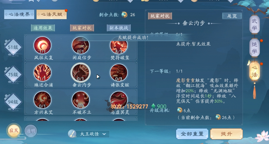 无论是寂灭还是通明,有些天赋是必点的,比如提升圣火状态效果的加成类天赋,或者增强基础属性的生存向天赋。咱们可以根据自己的玩法偏好来调整,比如喜欢PVE副本就多加点群体伤害天赋,偏爱PVP则侧重控制和免伤。