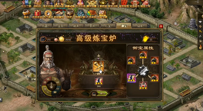 御宝突破一共能搞五次,每次要的精粹是越来越多的。第一次突破需要1000精粹,第二次要2000,第三次3000,第四次涨到5000,最后一次也就是第五次突破,一口气得吃掉8000精粹。这么算下来,把一个紫宝从头突破到顶,总共得准备19000精粹,要是你想把十个紫宝都弄满,那得是个大工程。突破带来的提升是实打实的,每次都会增加攻击力和兵力,第一次加300攻击和2000兵力,最后一次能加700攻击和6000兵力,五次突破完,一个御宝光靠突破就能多出3800攻击和32000兵力,这对武将的战斗力加成可是质的飞跃。