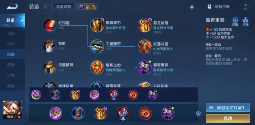 曹操的核心出装思路强调续航和容错率,通常以抵抗之靴、暗影战斧和破军作为基础。抵抗之靴能减少被控制的时间,暗影战斧提供冷却缩减和穿透,破军则大幅提升收割能力。在某些情况下,玩家会选择反伤刺甲来对抗物理伤害,或者搭配不死鸟之眼来增强回血效果。这样的装备组合能让曹操在团战中持续作战,不易被秒杀。