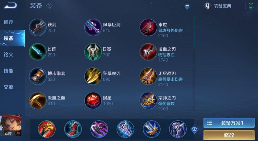 出装搭配无尽战刃、泣血之刃什么的,收益就非常低,基本上是浪费钱。所以她出装的思路跟大部分刺客战士不太一样,主要追求的是物理攻击力、物理穿透、冷却缩减还有一定的生存能力。铭文方面最主流也最省心的就是百穿铭文,也就是十个异变、十个鹰眼和十个隐匿,这套铭文提供了高额的物理攻击和穿透,还有移速加成,让她无论是清野、支援还是打伤害都很舒服。