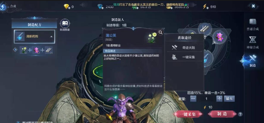 拿到各种药剂配方,首先得知道几个最基础的来源。完成新手阶段的任务指引是第一步,跟着主线走,系统会直接教你制药并送给你第一份配方。游戏里还设计了很多隐藏的奇遇任务,在奇迹大陆的主城或者特定地图溜达时,多留意那些带着感叹号的NPC,跟他们对话很可能就接到任务,完成后不仅给经验,常常还能解锁像清新药剂、抵抗药剂这类实用配方。所以别只顾着闷头跑图,多和周围的环境、角色互动,很多惊喜就藏在那些不经意的对话和探索里。
