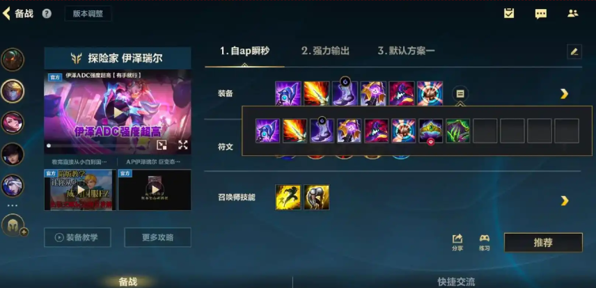 首先你要接受伊泽瑞尔前期的伤害可能没有一些传统射手那么高,他的发力期更偏向于中期装备成型之后。所以前期以稳健发育为主,多用1技能补刀和消耗,不要强行对拼导致自己死亡断掉节奏。要养成观察小地图的习惯,因为伊泽瑞尔的大招可以全图飞,多注意队友打架的地方,有时候一个大招刮过去就能帮队友建立优势甚至拿到人头。这个英雄非常考验技能命中率,尤其是1技能,它是非指向性的,需要你预判对手的走位,这需要大量的练习才能掌握。刚开始玩的时候空技能很正常,别灰心,多玩几把慢慢找到感觉就好了。