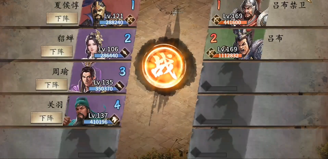 首发的武将非常关键往往得让红将夏侯惇打头阵,他要穿上极灵龟套装或者二级烛龙套装,最主要的是攻击力得够高,最好能堆到9600点以上,这样他上去一个战法才有机会直接秒掉对面的第一个武将,快速打开局面,如果攻击力差那么一点感觉秒不掉,也可以考虑给他换成极凤凰套装来补点爆发力,夏侯惇打完就得赶紧顶上貂蝉,她需要穿极驱虎套装,她的战法妙处在于能拉住吕布的满血步兵,等于帮咱们的队伍吸收伤害和消耗对方兵力,打控制的好手。