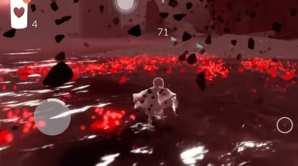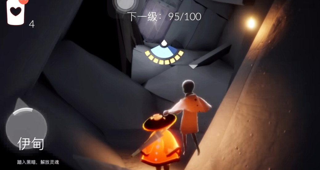 红石雨是间歇性下的,分不同的阶段。在第一阶段,红石雨会有停止的间隔,这时候就抓紧时间从一个石像冲到下一个。有个小技巧是,可以贴着右侧墙壁走,据说那边的石头密度会小一点。被红石砸中会损失光翼并被击倒,不要慌张,立刻点击大叫按钮能让你更快地爬起来。尽量不要在红石雨下的时候急着跳跃或乱飞,稳扎稳打地走或者斜向移动反而更安全。每成功点亮四个石像,你就能得到一根升华蜡烛,整个伊甸里总共有不少石像,全点满的话收获是相当可观的。