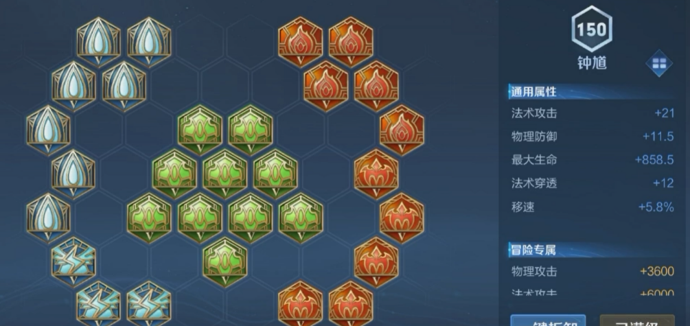 推荐的一套铭文是红色带梦魇,绿色带怜悯,蓝色带轮回。这套铭文总共能给你提供10%的技能冷却缩减,还有不错的法术攻击和法术穿透。冷却缩减这个属性对钟馗来说非常有用,因为它能缩短你二技能钩子的冷却时间,让你在前期就能用更频繁的钩子去骚扰敌人,帮队友创造机会。法术穿透能让你在前期打人更痛,就算出了一些肉装,伤害也不会太低。蓝色的轮回铭文还带了点法术吸血,能增加一些线上的续航能力,不用总回家。