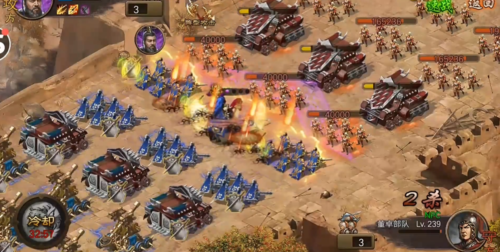 接下来第四个武将的登场就轻松多了因为面前的敌人可能就剩下一排兵。他直接撞上去解决掉就行,然后就会见到关底的主将董卓。这个武将面对董卓时,有一个非常重要的任务,就是要想办法反制或者抵消掉董卓释放的强大战法。只要能成功做到这一点,就算完成了他的核心使命,能给最后的主力输出武将提供一个相对安全的输出环境。是我们队伍里打硬仗的主力。这个武将通常需要比较硬的防御和不错的输出能力,他第一排的战车需要去和董卓的战车对拼,争取拼掉对方。