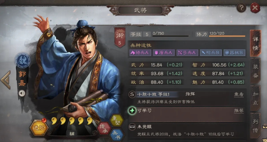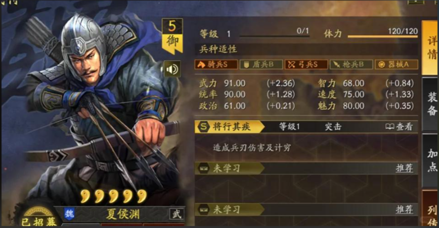 除了依靠战法,夏侯渊自身的属性培养也不能马虎。他的速度成长不算拔尖,所以额外的属性点分配就需要你花点心思。在保证武力值足够高、能打出伤害的前提下,要适当地给夏侯渊加一些速度点。这样做的目的是为了在内战时,或者面对那些同样会调整速度的对手时,你还能保持优先出手权。有时候装备上如果能洗出增加速度的特技,那更是锦上添花。一点点的速度优势,可能就决定了是你先技穷对方主将,还是对方先把你打懵。