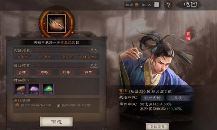 三国志战略版锻造铺有什么用