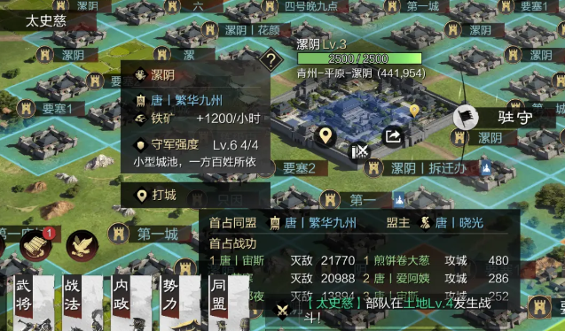 攻坚战的核心在于理解三级县城的防守构成,其防御分为两个部分,分别是城区常驻守军和城中心的主力部队。战斗并非一蹴而就,而是需要多轮次的连续作战,因此每支出征队伍都需要留有足够的余力。在发起正式攻击前,侦察环节至关重要,如果发现目标区域有敌军玩家驻守,则必须先将其部队击溃;若为空城,则只需应对系统守军,这些守军强度通常与普通无主地相近。击败守军只是第一步,真正的占领需要将城池的耐久度彻底削减至零,每次攻击能削减多少耐久,完全取决于你部队主将攻城值属性的总和。
