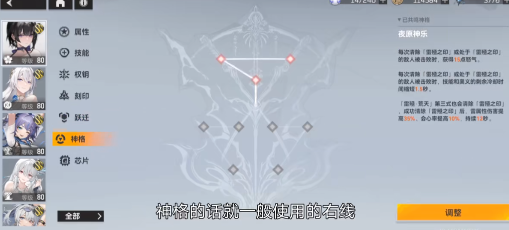 赋能的整体策略需要围绕震离的输出机制展开。震离的核心伤害来源于通过一、二技能施加雷极之印,再由三技能雷殛·荒天清除印记触发的高额伤害,尤其是第三段的爆发。赋能选择应全力服务于增强其技能循环的爆发能力。确保强攻等核心攻击词条是基础,同时平衡好暴击与爆伤属性。对于以夜原神乐神格为核心、追求技能连贯输出的流派,稳定的伤害加成词条收益显著;若选择逆天罚鳞神格追求单次超高爆发,则对攻击和爆伤词条的需求更为极致。