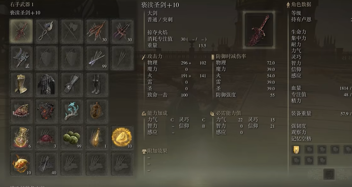 信仰流派在艾尔登法环中是个非常有趣的玩法,通过合理搭配装备可以发挥出强大的战斗力。最核心的武器选择,亵渎圣剑绝对是信仰战士的首选,这把武器的战技不仅能造成高额火属性伤害,还能在命中敌人时回复血量,推图和打BOSS都非常实用。它的信仰补正达到B级,建议优先把信仰点到60,再适当分配力气和灵巧属性。土龙鳞剑也是个不错的选择,战技释放时能保持霸体状态,岩浆效果在探索大地图时特别好用。