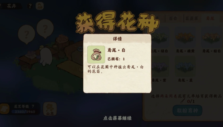 花卉育种系统是获取稀有鸢尾花色的核心机制。基础紫色与白色鸢尾种子可通过上述常规方式获得,而粉白、橘黄等特殊颜色需通过育种台培育。将不同颜色的鸢尾花放入培育台,每次消耗取粉笔进行杂交,例如粉白色需用紫色与白色鸢尾杂交,橘黄色需紫色与紫色或紫色与白色组合。育种结果存在随机性,相同配方可能产出不同花色,需多次尝试才能收集全图鉴。只有通过种植收获过的花色才能用于育种,未解锁的品种无法直接作为培育材料。