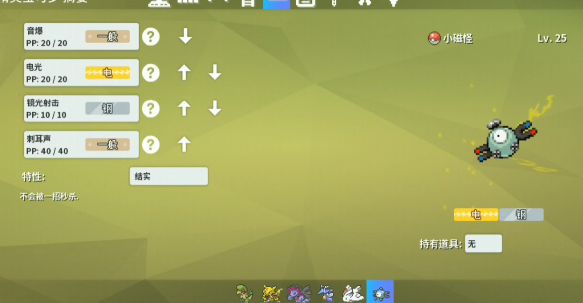 后期培养建议着重提升小磁怪的特攻与速度个体值,其进化形态三合一磁怪在电系道馆战中表现优异。若追求全图鉴收集,可重复刷取不同性格个体,胆小或保守性格为较优选择。该宝可梦在通关后的一岛遗迹探险中也能发挥探照和机关触发作用,属于兼具实用性与收藏价值的电系选择。