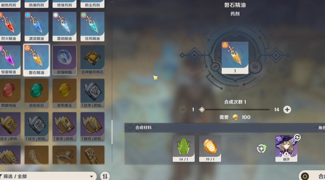 磐石精油的配方图纸可通过完成特定世界任务或直接合成获取,其基础材料为青蛙1与石珀1。该药剂能提升队伍中所有角色25%岩元素伤害,持续300秒,属于三星级增益类消耗品。配方无需额外解锁,玩家在游戏初期即可通过合成台直接制作,但需提前收集所需材料。