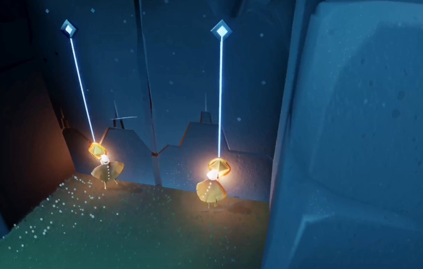 晨岛存在需要多人协作的解谜环节,这体现了游戏的核心社交机制。光塔右侧的云洞尽头设有双人石门,必须与其他玩家同时点火才能开启;洞内的石碓机关同样需要两人配合点亮。若暂时找不到搭档,可尝试在附近等待或使用游戏内的呼叫功能吸引其他玩家。完成这些协作任务后,乘坐光蝶升至顶部即可进入光塔内部,该区域两侧烛火建议全部收集,这些资源对后续成长至关重要。
