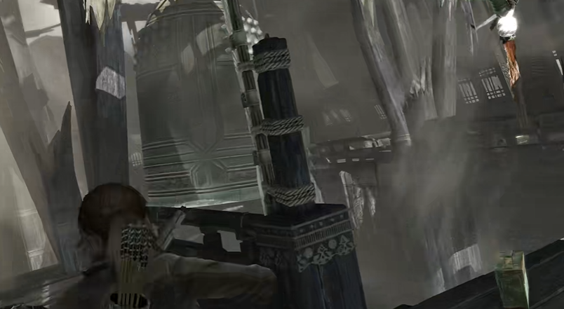 先走到任意一扇窗户旁,打开它让风吹进来。这时候快速切换到绳索箭矢,瞄准钟摆发射并往后拉,借助风力让它撞向同侧的木质支柱。如果撞击力度不够,可以多试几次调整拉拽角度。成功撞断第一根柱子后,记得关闭这扇窗再打开另一侧重复操作。两边支柱都破坏后,大钟会处于不稳定状态,为最后一步做准备。