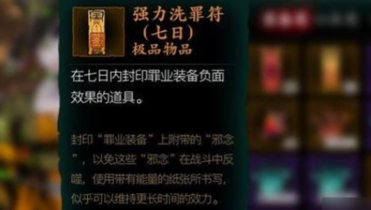 木沉洗罪符比普通洗罪符更稀有,它的获取方式稍微复杂一点,通常需要完成特定剧情任务或挑战高难度副本。这种符咒不仅能净化罪业,还能让装备属性更加清晰稳定,适合后期追求极致输出的玩家。如果暂时没有木沉洗罪符,可以先存放罪业装备,等攒够资源再净化。符咒的战略价值很高,尤其是在面对高难度副本时,合理使用能大幅提升战斗效率。