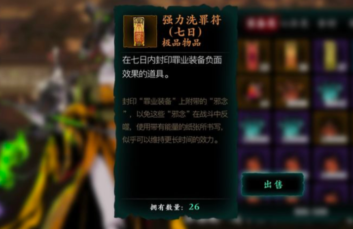 清洗的第二步是使用洗罪符压制装备的负面效果。罪魂武器虽然拥有比普通装备更宽广的词条数目和数值范围,但都带有极端负面效果,必须通过洗罪符暂时镇压才能发挥全部威力。目前游戏中的洗罪符分为单次、1天、7天三种时效类型,使用时需在装备界面点击洗刷罪业按钮,系统会提示选择洗罪符类型。清洗过程存在随机性,不同品质的洗罪符会影响负面效果的压制时长。