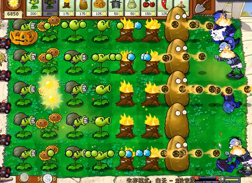 阳光是咱们最重要的资源,开局一定要优先种向日葵,别急着放攻击植物。前几波僵尸移动速度慢,完全来得及反应,先把经济搞上去才是王道。记住每排至少留一个空位给向日葵,后期阳光充足了再替换成攻击植物。夜晚关卡记得用阳光菇代替向日葵,虽然产量低但胜在稳定。
