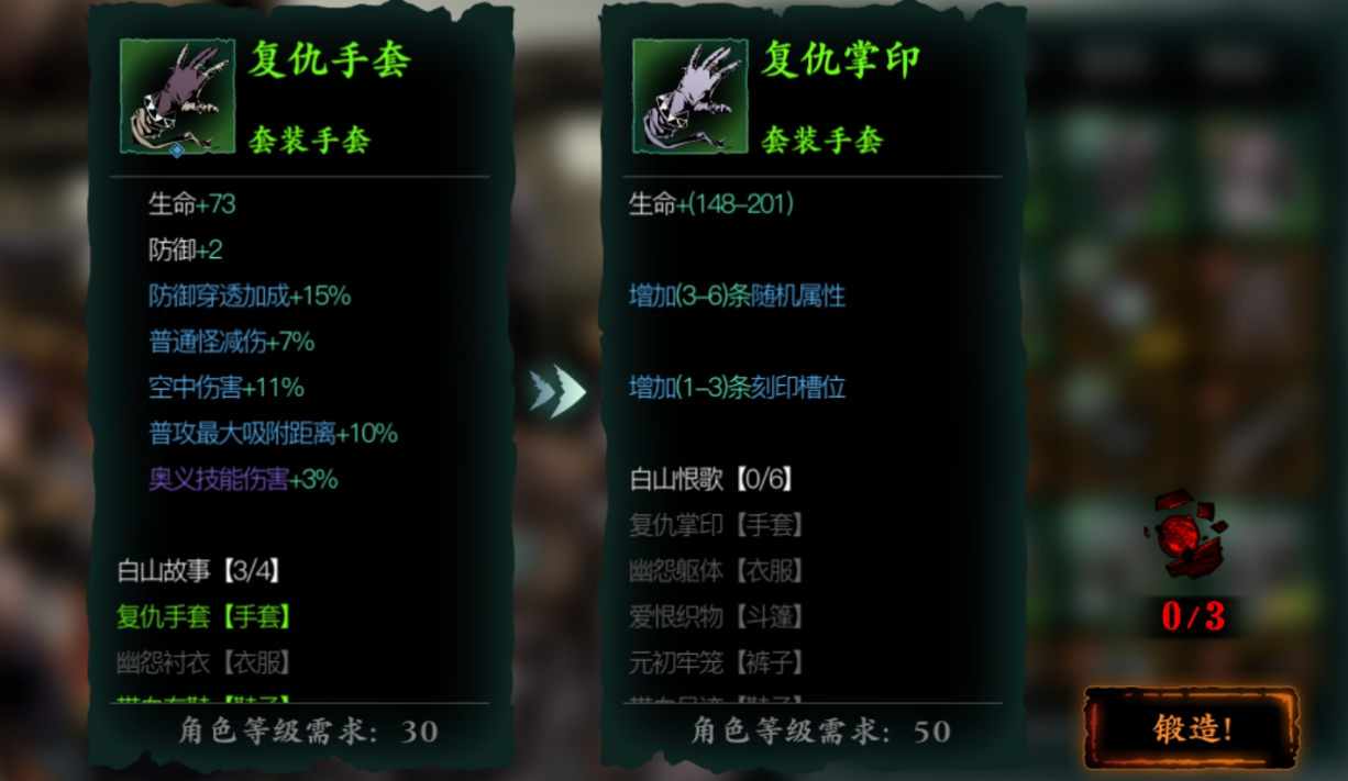 过渡期可以选择白山恨歌杀意套或剑神铁君子破甲套混搭,40级前用这两套推图效率很高。心法方面重点选择带有伤害增幅、冷却缩减和杀意加成的类型,比如老板娘心法能有效解决杀意短缺问题。玉玲珑的破甲能力本身就很强,不需要堆叠过多破甲属性,反而要平衡输出和生存,适当搭配吸血或防御类词缀。