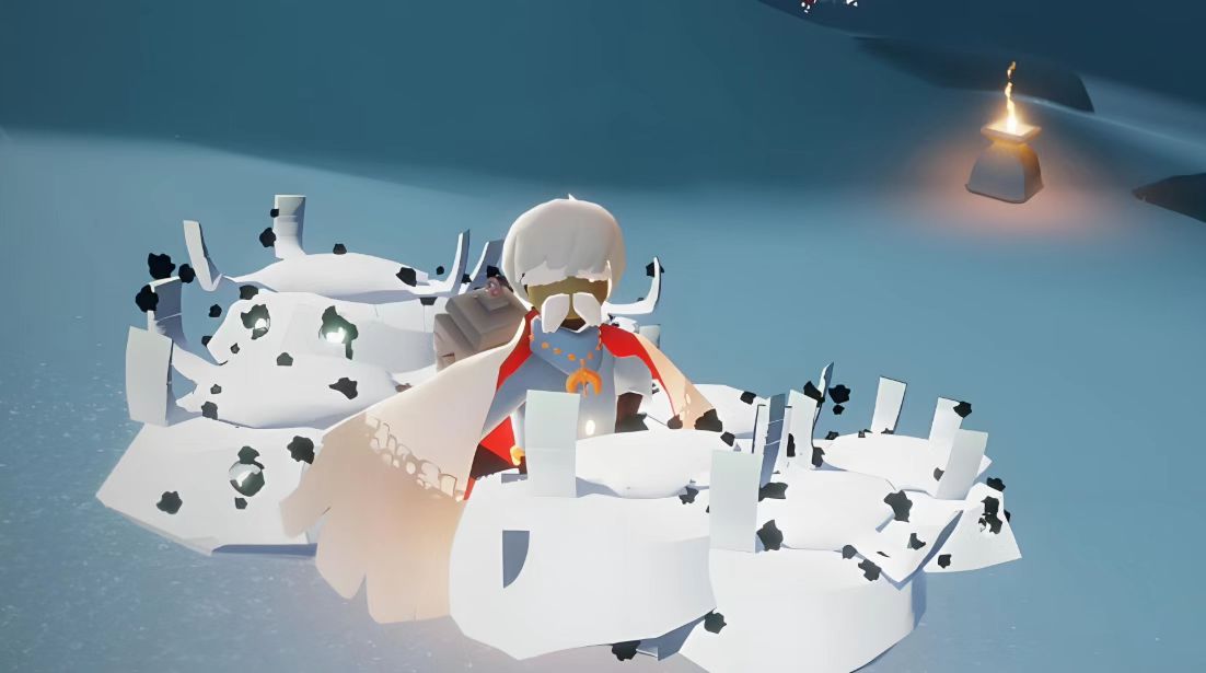 如果想体验趣味玩法,可以尝试烤螃蟹彩蛋。传送到暮土四龙图后往右侧飞,找到黄色凹坑附近的滑坡,跳下去就能看到烧烤架。点燃烧烤架后,周围的螃蟹会被吓跑,竹签上自动穿好的螃蟹模型适合拍照留念。这个彩蛋不会消耗实际拥有的螃蟹道具,纯属娱乐性质。