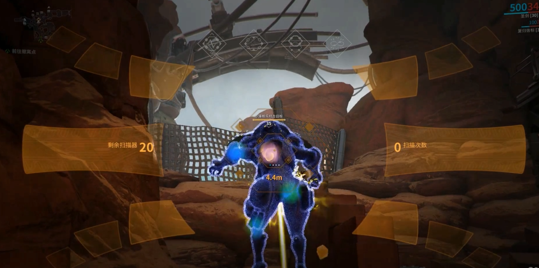 顺利完成迷雾再生任务,首先得准备好两样关键道具——结合扫描器和动能吸收陷阱。这两样东西可以在任意中继站的二楼找中枢集团(玩家俗称大黄脸)领取。普通扫描器可不行,必须用大黄脸给的特殊扫描器才能看到目标身上的白色光点。任务开始后,系统会送你25个扫描器,省着点用,遇到精英沙漠枪兵时,先用陷阱定住它,再用扫描器对准四肢和躯干的四个发光点逐个扫描。