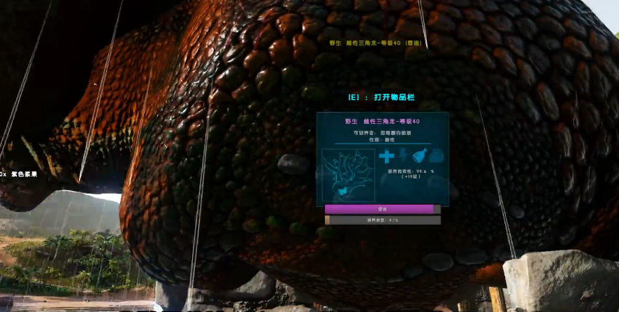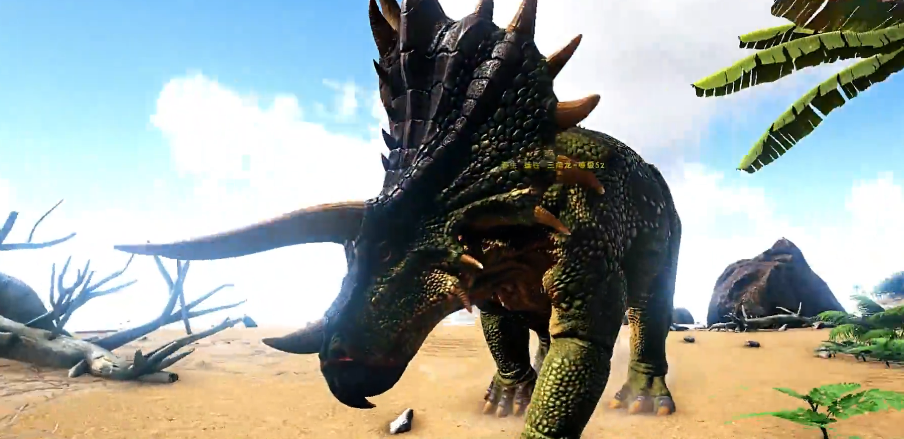低等级三角龙不仅驯服时间较短,其食物消耗量也相对较少,完全能够满足初期浆果采集的需求。驯服过程通常需要40分钟左右,期间需要持续监控眩晕值与饥饿度的平衡。三角龙对流星锤具有完全免疫的特性,这使得麻醉箭成为最有效的击晕手段。三角龙的食性使其成为理想的移动浆果仓库。驯服后的三角龙在采集浆果时具有特殊加成,尤其是对黑色浆果的采集效率显著高于其他食草类恐龙。
