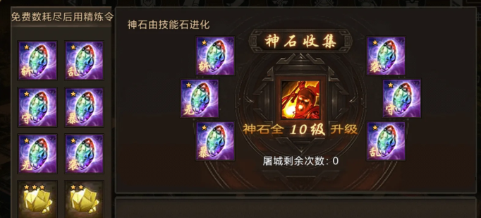 晶石进阶为5级后,原有技能属性会翻倍并合并为高级技能。进阶后的晶石会转变为对应的技能石,如斩杀石、乱舞石等。需每种技能石只能拥有一个。技能石每提升5级会赠送一个新的晶石技能,但必须将该技能升至5级后才会开启下一个赠送技能。这种递进式解锁机制要求玩家合理规划技能升级顺序。