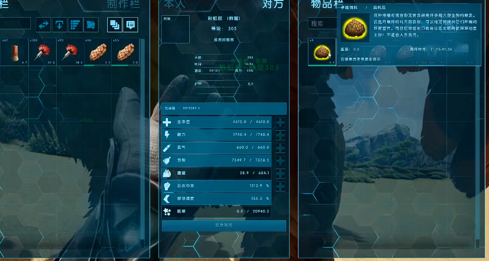 打晕之后就是喂食环节了,这时候得盯着它的饥饿值,等降到1500左右再开始喂,这样驯服进度涨得快。如果手头有静心膏就更好了,能大幅缩短驯服时间,但没条件的话就老老实实等吧。喂食的时候记得随时补充麻醉值,别让它中途醒过来,不然前功尽弃。