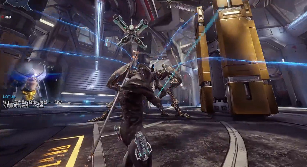 这货有四条机械腿,本体是打不动的灰色血条,得先集中火力打断它的腿才行。每条腿打爆后它会短暂趴下,这时候赶紧对着身体猛输出,等它站起来就继续循环打腿。场地里有四根柱子特别重要,记得利用它们当掩体躲技能哦。