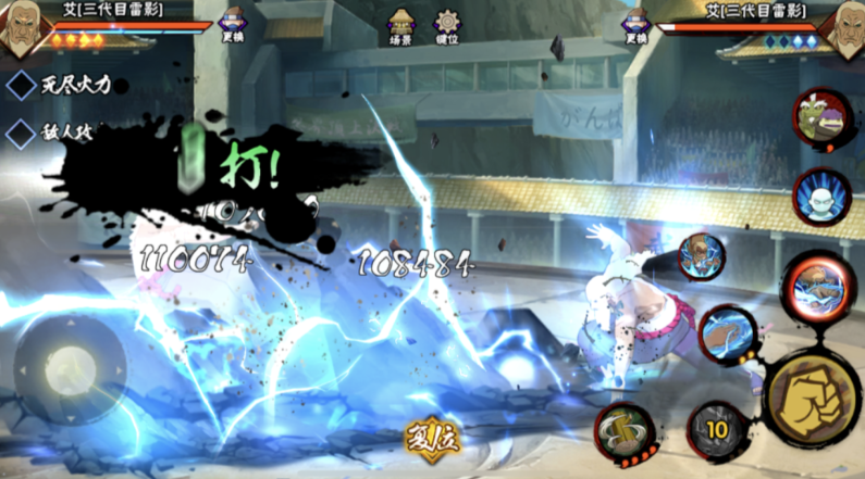 在实战中,三代雷影适合采用压制型打法。利用一技能的远程消耗和二技能的突进能力抢占先手,配合普攻连招打出高额伤害。奥义技能可作为终结技,或在敌方血量较低时直接收割。面对控制型忍者时,需谨慎保留雷铠以应对关键控制。若搭配增加查克拉或提供护盾的辅助型忍者,可进一步提升三代雷影的持续作战能力。