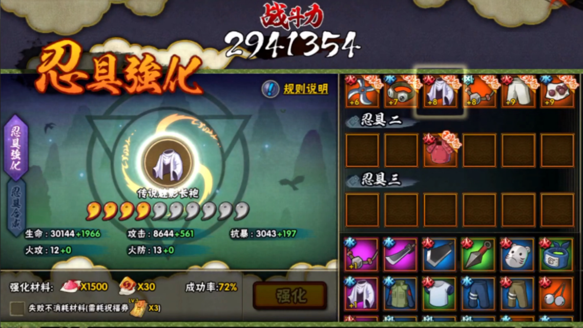 忍具强化是提升战力的重要途径,每次强化都能增加基础属性。不过千万别随便点精炼按钮,尤其是对究忍具,一不小心可能就会让辛苦获得的装备消失。强化材料主要来自日常活动和副本,记得每天把次数用完。对于新手来说,可以先从紫色忍具开始培养,等后期有了橙色或究忍具再转移资源,避免浪费。