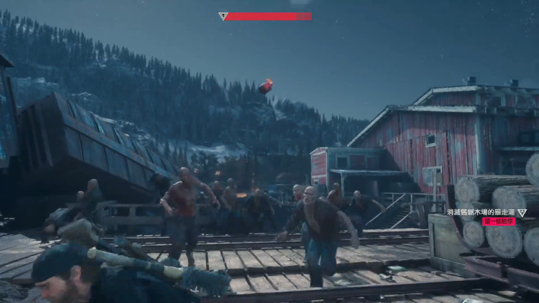 锯木厂内木质结构可互动,按下特定按键能放下木块暂时阻挡尸潮,为投掷或射击创造机会。建筑物顶部可通过窗户攀爬,占据制高点向下投掷手雷能清除1/4至1/2的敌人。当尸群涌上高处时,反向跳跃撤离并转入游击战。需持续开启求生视野观察包抄路线,部分狭窄通道可蹲伏穿越,迫使丧尸绕行从而争取输出时间。