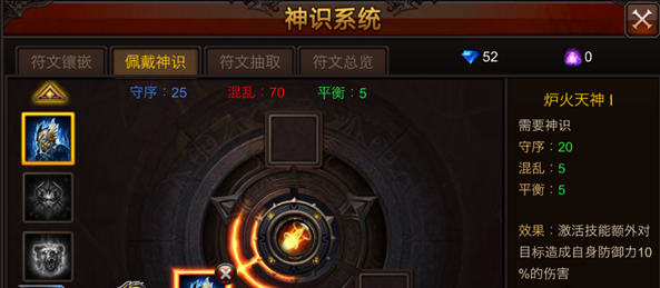 神识的种类繁多,但佩戴槽位有限,所以咱们得精挑细选。炉火天神是一个非常适合战士的神识,它能让你在释放技能时额外造成自身防御力一定比例的伤害,特别适合血厚防高的玩法。如果你的打法偏向于爆发,可以选择猩红恶魔或索命恶魔这类以血量为触发条件的神识,当敌人血量低于某个百分比时,技能伤害会大幅提升,非常适合在残血收割时使用。